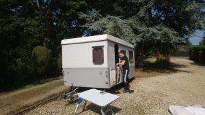 Jamie and Ruth, also early risers, had been go-karting north of Leicester (as you do on a sweltering Sunday morning) before arriving at Willow Bank. Their mission: caravan cleaning. The outside got a proper jet wash, the inside a deep hoovering, and then they played estate agent by taking a full set of photos for the forthcoming sale. If it doesn’t sell now, it won’t be for lack of elbow grease!