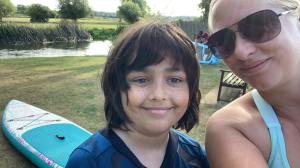 Ellis has bounced back from his tonsillitis well enough to try his hand at paddle-boarding with Charlotte, while Alice was also back to her usual cheerful self, joining her mum and dad for a pub visit after Sarah had treated herself to a refreshing paddle on the canal. A fine mix of activity and relaxation!