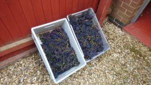 On the 21st, I rolled up my sleeves and got to work on this year’s vintage, starting with the rather laborious task of picking grapes off their bunches. It’s a slow and sticky job, so I interspersed the monotony with Radio 5’s finest offerings and the occasional trip into the garage to assist Mike with rewiring the horn on his Austin Healey. (If you ever fancy a crash course in patience, try working on an old car’s wiring for seven hours!) The job was frustrating, but ultimately successful, and just as well, the grapes, despite our rather disappointing summer, have defied the odds with surprisingly high sugar content. I’m optimistic that this first 25l batch of Must will turn into a fine red wine, though I may end up sampling more than my fair share before it’s ready!