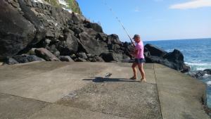 We moved on to the Ponta do Arnel lighthouse, a precariously situated building reached via an equally steep and treacherous road. We spent some time at the tiny harbour directly below, where we were entertained by one of the locals fishing. It seemed that every time he dropped his lure into the choppy waters, he caught something.