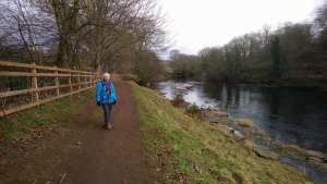 Leaving the base of the ramparts, we descended steeply through cobbled streets to river level, where we joined a well-trodden path alongside the watercourse. The River Swale at Richmond is wide, rocky, and fast-flowing, a formidable natural deterrent to any would-be aggressor. It also provides a delightful walk, with plenty to see, at least along the section we explored.
