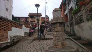 We left the hotel at 7 a.m. for a city tour. Fianarantsoa, at first glance, resembles most of the larger settlements we’ve passed through: narrow streets lined with darkened shops and crowded with street vendors. Whatever residential dwellings there are, tightly wedged between shops and stalls, appear poorly built and worse maintained. But given the challenges faced by so many of the country’s inhabitants, it’s clear that a fresh coat of paint and a tidy pavement are far from the top of anyone’s list of priorities.