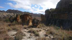 It took us 30 minutes to drive to the turn-off, where we then bounced and juddered along a rutted and dusty road, heading toward a line of shimmering, towering cliffs we were about to explore.