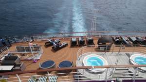 Since Covid, there have been noticeable changes to cruising. Though guests no longer wear masks, all the crew do. All meals are now served on the plate, even in the buffet restaurant, and hand sanitisers are everywhere. There’s been a sea change in attitude, with everyone, crew and guests alike, using them regularly. On the Ambience, evening meal times are open in all restaurants, which is not to our liking. We prefer the second sitting, with the same people at a table for six or eight. It’s a great way to get to know people well (for better or worse) and develop a comfortable routine. Under the open seating system, you certainly meet more people, but it’s hard to move past introductory conversations before heading off to the next activity. We’ll probably get used to it, though, at least Sue will have plenty of faces to remember for years to come.