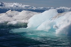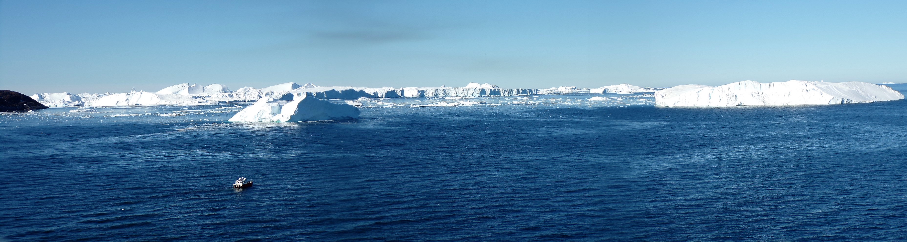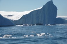 These bergs were quite unlike the rainy-day, blue-tinged ones we’d seen a few days earlier in Narsarsuaq. These were predominantly white and vastly larger. There was still some blue, but it was confined to cracks and crevices in the biggest of them. We also saw brown bergs calved from the glacier’s flanks, coloured by the finely ground rock gathered as the glacier scraped its way to the sea. And then there was black, the most dangerous of all. These were chunks of bubble-free ice, difficult to spot, incredibly dense, and capable of tearing the bottom out of any boat unlucky enough to strike one. The skipper kept a sharp eye out for them.