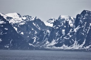 Today, we re-crossed the Arctic Circle, heading south towards Greenland’s capital, Nuuk. The ship is making steady progress, steaming 25 nautical miles down the coast at a comfortable 11.5 knots. The seemingly close mountain range we are passing appears to be only a couple of miles away, a deceptive illusion that speaks to the stark height and sheer scale of this bleak, unforgiving coastline. It is not, one suspects, a place for any sensible warm-blooded creature.