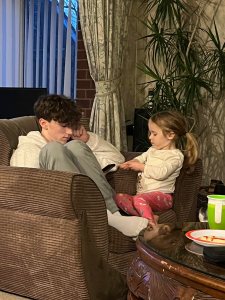 After breakfast, cooked by Lee and eagerly consumed by the family, it was time to get down to the serious business of present opening. This year’s principal distributing elves were Ellis and Joey, with the occasional helping hand from Alice. Remarkably, there was very little chaos from discarded wrapping paper and boxes. For once, gift recipients managed to keep pace with the deliveries and dutifully deposited the festive shrapnel into one of the many bin bags strategically placed around the room.