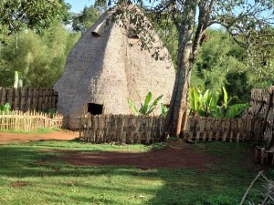 Reunited with our cases, we boarded the small coach that was to be our transport for the day. Our destination was a visit to the Dorze people, who live high in the Gughe Mountains. Once feared warriors, the Dorze are now better known for their skill in cotton weaving and the production of brightly coloured clothing. Their tall, beehive-like houses, constructed from bamboo and other local materials, are an iconic feature of the landscape.