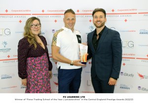 Jamie’s business, FX Learning, has, for the second year running, been named Forex Trading School of the Year in the Central England Prestige Awards. He and Ruth travelled to Birmingham to receive the award.