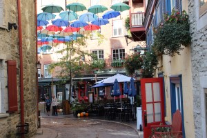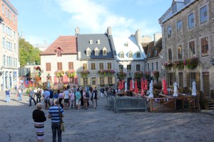 It was just past 9 a.m. when we plunged into the narrow, cobbled streets of Old Quebec, and the tourist groups were already on the march, crocodile fashion, with a flagged guide leading the way. Taking photos quickly became a challenge, as any carefully framed shot was instantly overrun by a procession of zombified nationalities, each determined to secure their pristine souvenir image. The most successful photographs were those taken above door level, or from atop walls and fences looking downward.