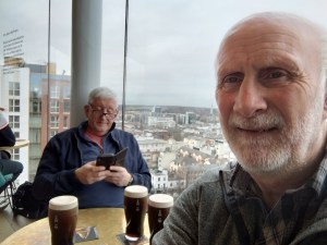 Our very chatty barmaid forgot to collect our ‘free’ Guinness tokens, so once we’d drained our glasses, we returned to the bar and exchanged them, entirely legitimately, for a second round. As fortune would have it, we were later ‘gifted’ even more tickets by departing visitors who also hadn’t been relieved of theirs. During breakfast, we’d prepared a little ‘pack-up’ of ham and cheese rolls, which we now devoured while sipping stout by the window, enjoying the soft winter sunshine and debating the merits of black versus white pudding and other essential Irish matters. We thoroughly enjoyed our time in this increasingly ‘free’ bar.