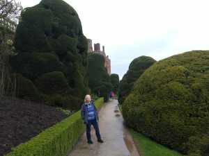 After thoroughly exploring the castle’s interior, we were pleased to find the rain had ceased as we stepped outside to explore the gardens. The small valley on which the castle is perched is tiered with south-facing terraces that slope down to a large grassy lawn, which I imagine was once used as a football pitch and now serves as an activity or showground during the summer months. The top two terraces are lined with ancient clipped yew trees, some 400 years old, within which you can shelter.