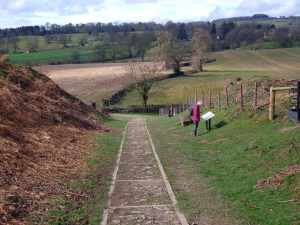 A large group of schoolchildren had been visiting earlier, and when we noticed the shortcut they took back to the car park, we decided to follow the same route on our descent. As it was now midday, we chose to sit on a bench beside the closeby village cricket pitch, with a fine view of the fort, and enjoy our packed lunch.