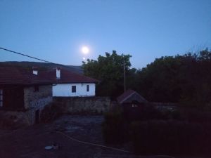 A little later, I ventured outside and scythed part of the area beyond the garden wall in preparation for David to strim it. Afterwards, I took a walk into the village and was soon joined by Ritya, the village dog, for a little exploration. Aside from the property next to David’s house, several other buildings showed signs of ongoing renovation. I ended my ramble with a stretch along the recently gravelled road leading out of the village, returning to David’s just as the rain began again.