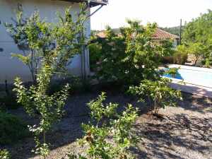It was too hot to work outside for the next three hours, so we rested indoors. As the temperature began to drop, we set about jet-washing the pool surround and pathways. We continued until it was time for our evening meal of another jacket potato and salad, which we ate under the shelter of the wood barn roof. By the time we had finished, the air had cooled enough for us to plant the salad seedlings in the vegetable plot at the back of the house and give them a thorough watering before darkness fell.