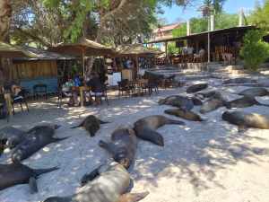 On the way back to the hotel, we first stopped for cold drinks at a bar on Playa Mann and watched the sea lions chilling out all around us, then paused again in town for large cones of ice cream to cool down further. We spent the heat of the afternoon in the comfort of the hotel and its shower facilities.