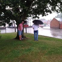 At 5.05 p.m., Sean, Jim, and I caught the bus to Great Glen, picking up Paul in Kibworth en route. We had booked in for ‘Pie Night’ at The Yews. As we entered the pub, dark, menacing clouds rolled over the village, and a torrential downpour, the sort that could float the Ark, began.