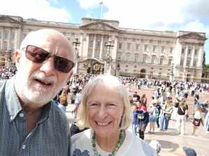 Over the next few days, with my foot and ankle heavily strapped, I managed to complete painting the front fence and continued watering the vegetable plots. By Tuesday, with the help of Ibuprofen, I was able to accompany Sue on the children’s birthday gift, a trip to London. Charlotte, Jamie, and Sarah had clubbed together to buy us a tour of Buckingham Palace and its gardens.
