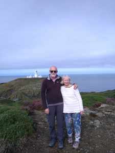 It was drizzling as we had breakfast, but thankfully this disappeared as we left Trefin to drive to Strumble Head Lighthouse, built by Trinity House in 1908 to mark the dangerous stretch of coast between Ireland and Wales. The lighthouse stands imposingly on St Michael’s Island, an islet to the west of Fishguard, separated from the mainland by a very narrow gap. It was a slow half-hour drive along mostly narrow, high-banked country lanes with sharp bends threatening a collision at every turn. It was early, and we were lucky to meet only one oncoming vehicle, the twice-daily Strumble Shuttle minibus.