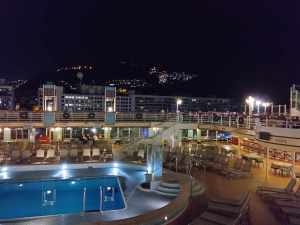 The temperature was a balmy 28°C, and still layered for the -1°C of a British winter, we were eager to shed a few clothes. We made our way to Deck 10, cabin C228. After a brief introduction to our cabin steward, we headed to one of the buffet restaurants for a light lunch. On our return, our cases had magically arrived, and their contents were soon neatly arranged in drawers and hung in the wardrobe.