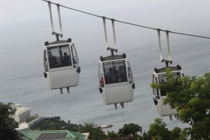 Believing the showers had passed, we left the ship around 9:30 am and made our way to the base of the Skyride to Paradise Point. After queuing and paying $29 each for our tickets, we climbed the steps to board the gondola that would take us upwards. As the ascent began, so did the rain, partially obscuring views of the bay.