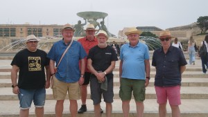 Our minibus driver was waiting for us in the Arrivals Hall and whisked us away on our forty-minute transfer through heavy traffic to the Pebbles Hotel in St. Paul’s Bay. The sky was blue, the temperature was in the twenties, and very soon we were checked in, changed into shorts, T-shirts, and sandals, and making our way to the sea just a short walk away. Malta has very few sandy beaches, and in our resort, there were none, other than short, artificial strips along the frontage of some restaurants and hotels. Mostly, the sea is accessed over concrete or a rocky foreshore. Sitting on a low wall taking in the views from the top of an access road, a kindly lady offered to take a photo of our group, and we accepted before making our way down to sea level via a series of steps. We strolled along the road hugging the shoreline, enjoying the warmth and checking out the numerous bars and tourist stalls along the way. Suraj purchased a straw hat from one of the stalls, joining the rest of us in wearing the official tour headgear. We ambled along the coast for around an hour before finding a set of benches from which we could watch students from a nearby college take to the water on a section of artificial beach. What a pleasant way to finish a day of learning, chilling out with a dip in the sea with your friends. In the UK, the Atlantic is far too cold at this time of year to do likewise.