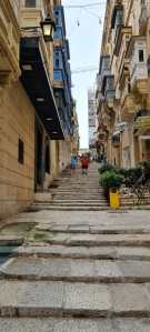 Our straw hats proved invaluable as we navigated streets packed with tourists. At times, the only way we could keep track of one another was by spotting our distinctive headgear among the sea of people equally intent on enjoying the delights of Valletta. Upon reaching the fort, we opted not to explore its vast structure, instead plunging back into the city in search of refreshments. We found a bar in Straight Street, known locally as “Strada Stretta,” one of the most famous and historic streets in Valletta. Running parallel to Republic Street, it was once the city’s main nightlife hub, particularly during the British colonial era. Originally designed by the Knights of St John in the late 16th century, it became notorious in the 19th and 20th centuries as a hotspot for bars, jazz clubs, and entertainment, attracting British sailors and servicemen. The street has also hosted famous figures such as Sir Winston Churchill and the Duke of Edinburgh.