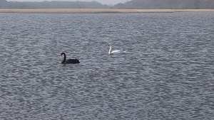 A few dog walkers passed by, but after about a mile of beach tramping, we encountered a gentleman who warned us that the tide was turning. We had about half an hour to reach the point where we could leave the beach before being stranded. Picking up the pace, we abandoned our shell and fossil hunt and strode off purposefully. We successfully navigated around a small section of sandy bedrock that would soon have been awash with the incoming tide. After that, there was little danger of being cut off, as the cliff gradually reduced in height until it levelled out into a shingle and sandy strip between Benacre Broad and the English Channel. Here, we rested on a large driftwood tree trunk, recovering from our exertions while observing a great many swans gracefully sculling on the water. We were particularly fascinated by a lone, rare black swan just a few metres from the shore. A couple of skittish oystercatchers sifted along the water’s edge, only to fly off when we rose to continue our ramble.